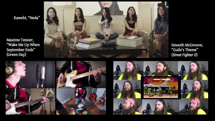 Some of them are serious, some of them are humorous. There are faithful recreations, which pay tribute to the original recordings by trying to stay as close as possible to the source material; and there are adaptations and interpretations. There are even “mashups” of two or more songs. Some artists embrace the artifice of YouTube, green-screening or image masking themselves into a power trio, a vocal quintet, or even more.