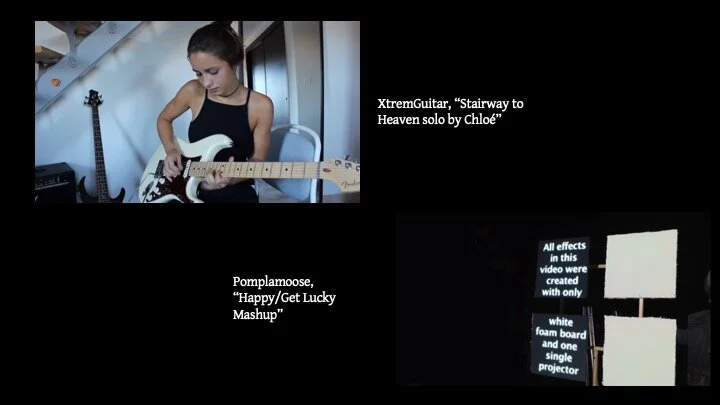 Others are naturalistic, emphasizing their liveness or lack of effects, as in the unadorned basement seen in the background below. Or, perhaps they their intricate, well-rehearsed audiovisual constructions, executed in single takes ala Hitchcock’s Rope. Regardless of the particular style, it is clear that since it launched on Valentine’s Day 2005, YouTube has become a platform for creative musical expression of all kinds.